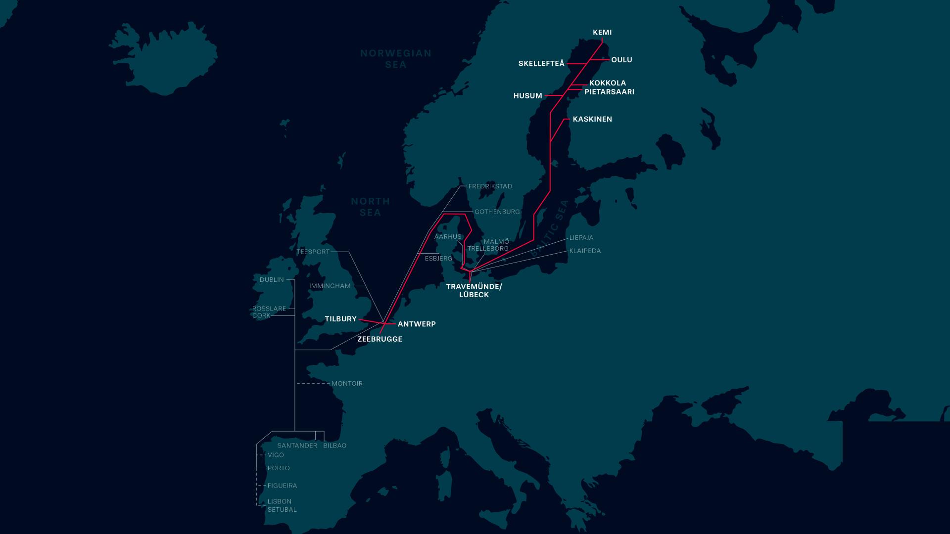 Wallenius Sol tarjoaa reittejä useisiin suuriin satamiin Pohjois-Suomessa ja Ruotsissa, Saksassa, Benelux-alueella ja Isossa-Britanniassa. Perämerellä käytettävät alukset ovat Botnia Enabler ja sisaralus Baltic Enabler, jotka valittiin vuoden 2022 roro-aluksiksi.